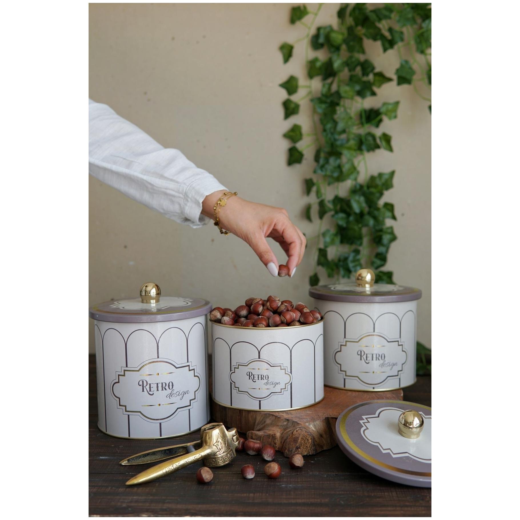 Ø90x100 mm Metal Canister Set (Set of 3) with Dome Lids Retro Retro Design